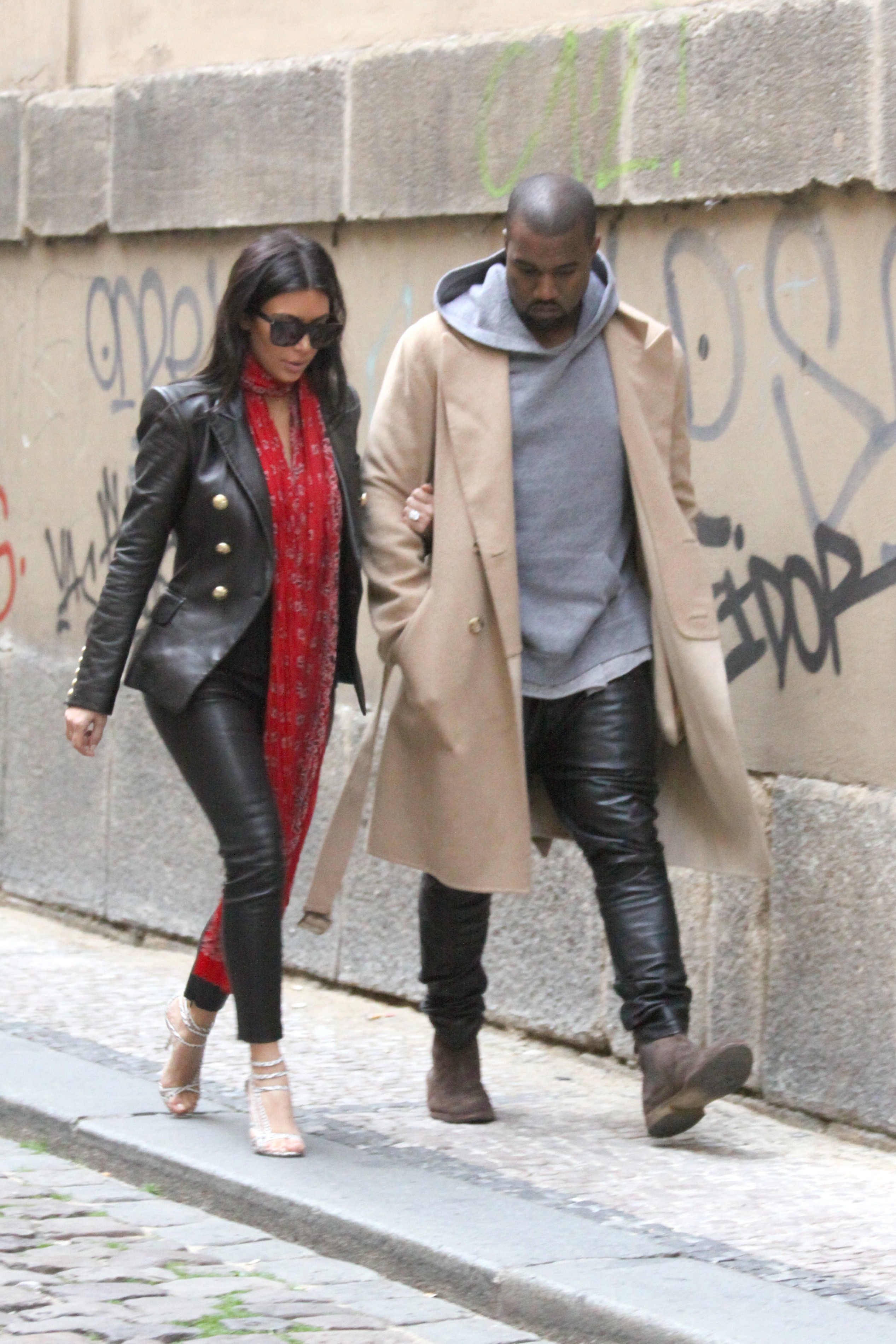 Kim & Kanye continue their honeymoon travels and show off their wedding ring bling...
